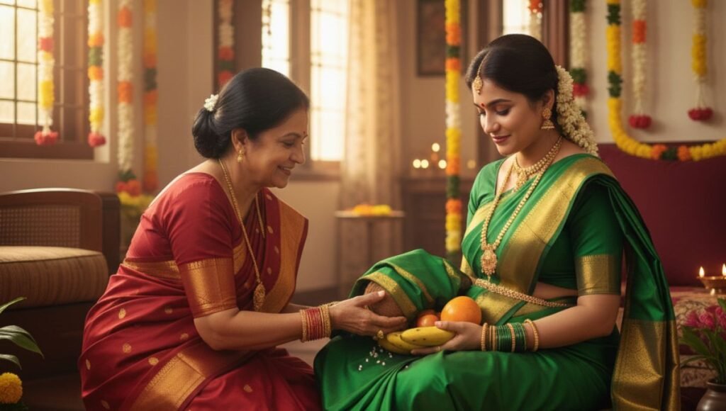 - साडी किंवा वस्त्र – सौभाग्य आणि स्त्रीत्वाचा सन्मान