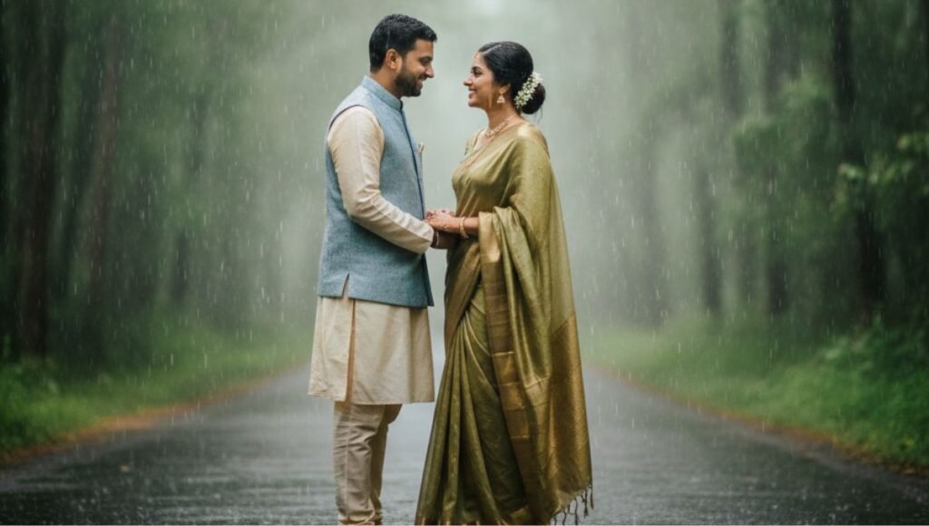 पाऊस आणि रोमान्स यांचं नातं तर जुनं आहेच! आणि जेव्हा प्री-वेडिंग फोटोशूटची वेळ येते, तेव्हा पावसाळा एक जादूई पार्श्वभूमी देतो. हिरवीगार निसर्ग, ढगाळ वातावरण, आणि पावसाच्या थेंबांमधला तो खास रोमान्स – हे सगळं मिळून तुमचे प्री-वेडिंग फोटो खरोखरच अविस्मरणीय बनवू शकतं. पण पावसाळ्यात आउटफिट निवडताना काही खास गोष्टींची काळजी घेणं महत्त्वाचं असतं. चला तर मग जाणून घेऊया की पावसाळी प्री-वेडिंग शूटसाठी कोणते आउटफिट्स तुमच्यासाठी परफेक्ट ठरू शकतात.
