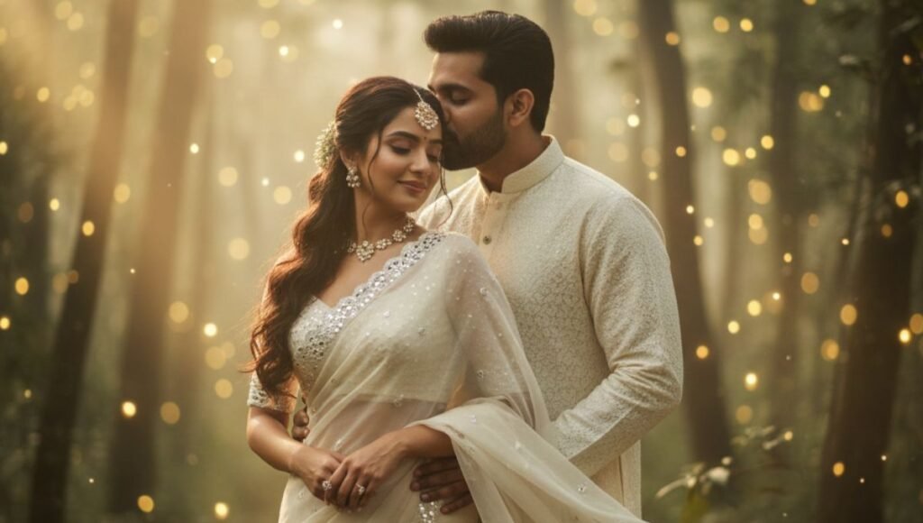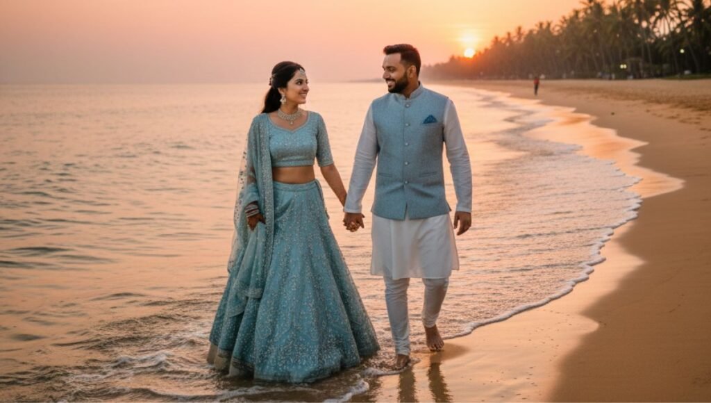 6) कपड्यांचा प्रकार आणि पोझ : फक्त रंगच नाही, तर कपड्यांचा प्रकार आणि पोझ सुद्धा महत्त्वाचे असते. उदाहरणार्थ, जर मुलीने फ्लोई गाऊन घातला असेल, तर मुलाने त्याला पूरक असा सूट किंवा स्मार्ट कॅज्युअल कपडे घालावेत.