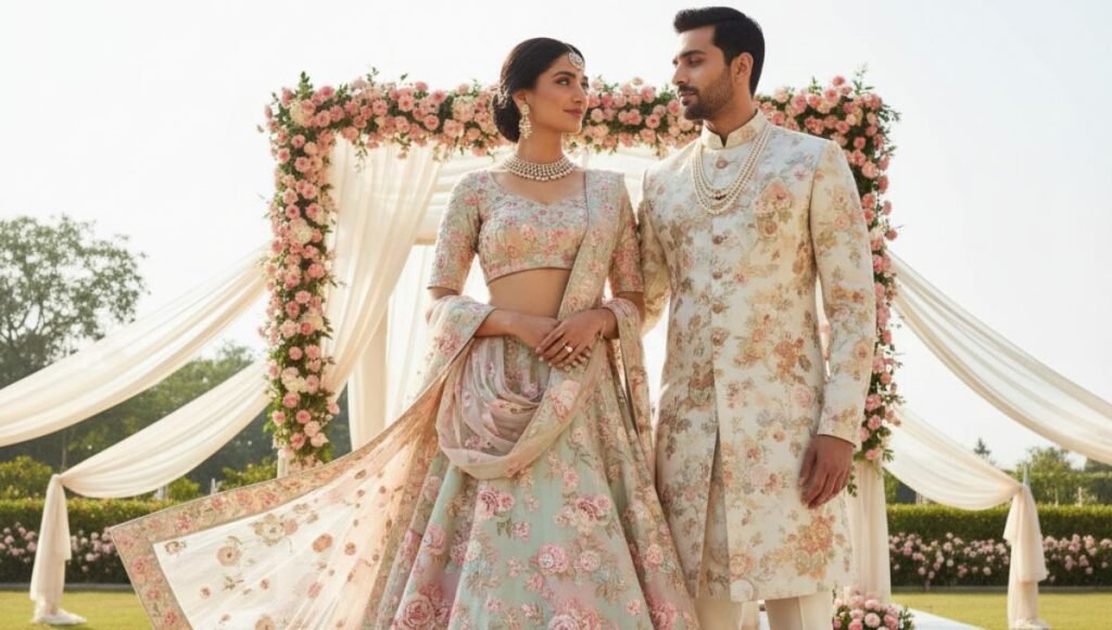 डिटेलिंगमध्ये छोट्या गोष्टींचाही समावेश होतो जसे की बटणांचा रंग, टॅसल्सची डिझाइन, किंवा लेसचा प्रकार. काही डिझायनर एकच फॅब्रिक वापरून वधू आणि वर दोघांचेही आउटफिट तयार करतात, ज्यामुळे परफेक्ट मॅचिंग मिळते. हे पाहिले तर छोटेसे पण खूप इफेक्टिव्ह असते.